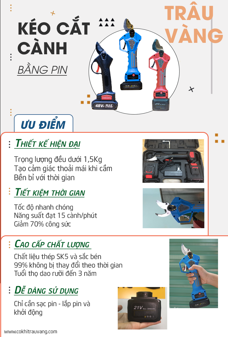 Đọc thêm: Giá kéo cắt cành bằng pin mới nhất 2024 của Trâu Vàng